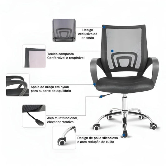 Cadeira de Escritório com Encosto em Tela Mesh
