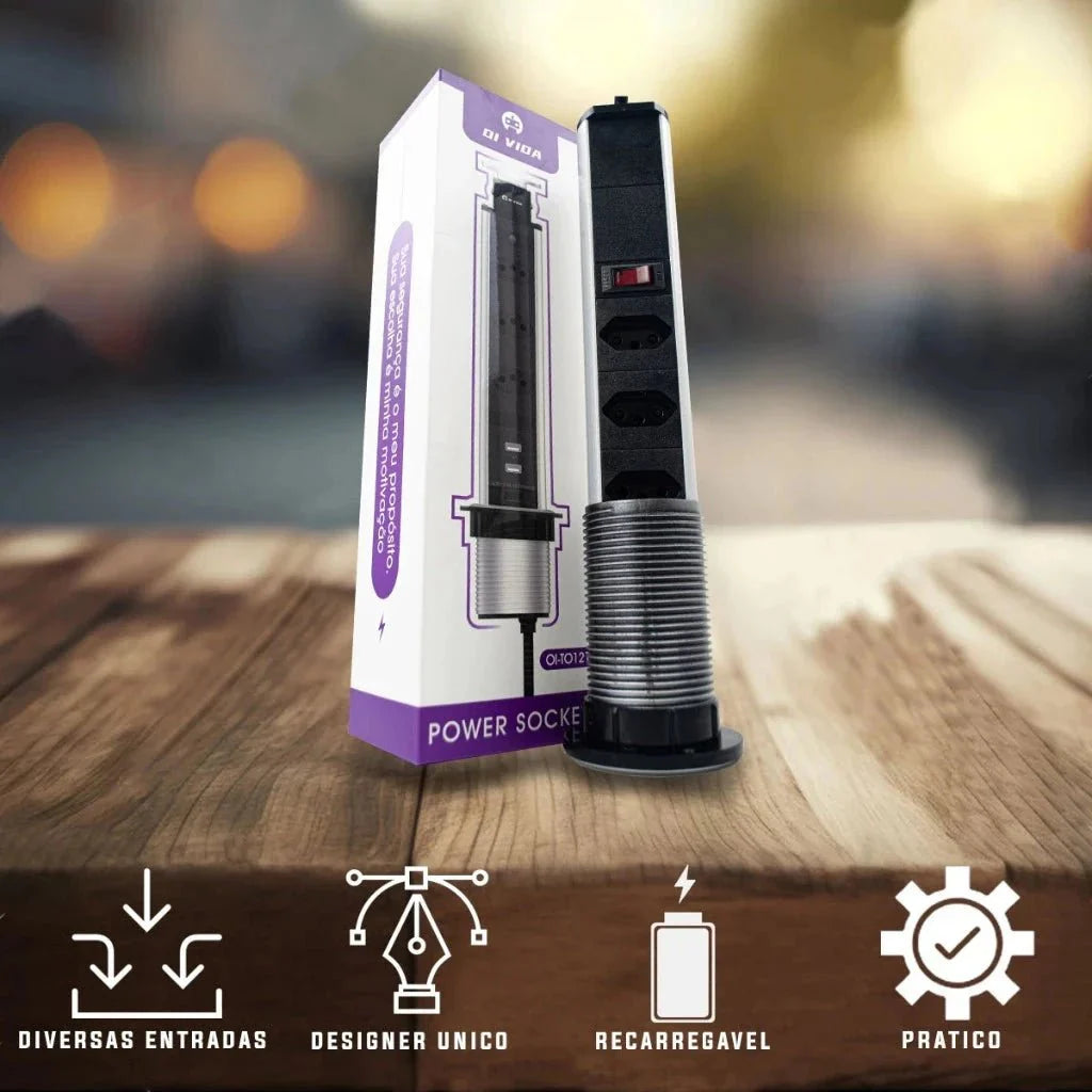 ⚡ TORRE DE TOMADA RETRÁTIL COM USB – ENERGIA E ORGANIZAÇÃO NA SUA MESA!